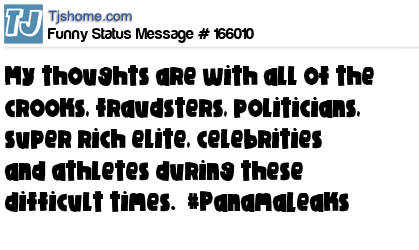 X My thoughts are with all of the crooks, fraudsters, politicians, super rich elite, celebrities and athletes during these difficult times. #PanamaLeaks