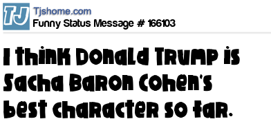 X says I think Donald Trump is Sacha Baron Cohen's best character so far.