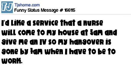 X says I'd like a service that a nurse will come to my house at 5am and give me an IV so my hangover is gone by 7am when I have to be to work.