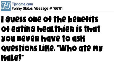 - # 147835 One of the benefits of eating healthier is that you never have to ask questions like, "Who ate my kale?"