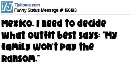 X says Mexico. I need to decide what outfit best says: "My family won't pay the ransom."