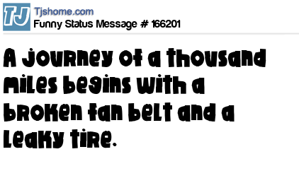 X says A journey of a thousand miles begins with a broken fan belt and a leaky tire.