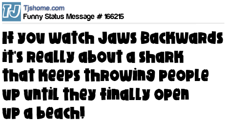 - # 57163 If you watch Jaws backwards, its about a shark who throws up so many people, they have to open a beach.