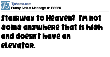 X says Stairway to Heaven? I'm not going anywhere that is high and doesn't have an elevator.