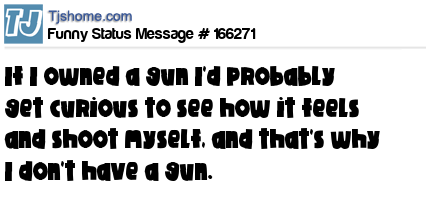 X says If I owned a gun I'd probably get curious to see how it feels and shoot myself, and that's why I don't have a gun.