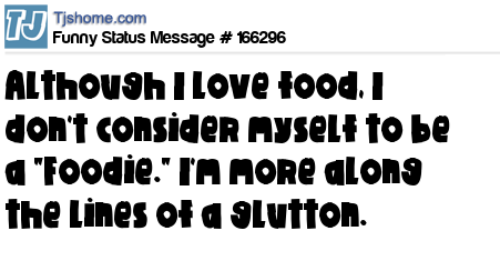 X Although I love food, I don't consider myself to be a "Foodie." I'm more along the lines of a glutton.