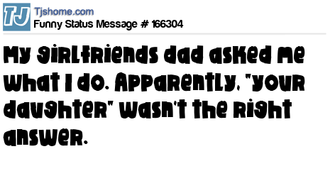 - # 158538 My girlfriends dad asked me what I do. Apparently, "your daughter" wasn't the right answer.