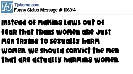 X says Instead of making laws out of fear that trans women are just men trying to sexually harm women, we should convict the men that are actually harming women.