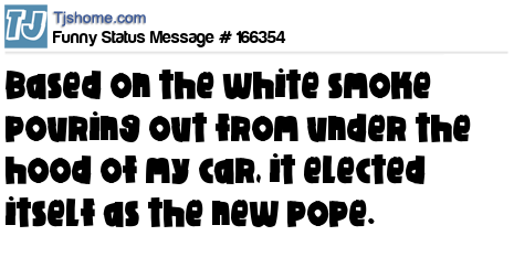 X says Based on the white smoke pouring out from under the hood of my car, it elected itself as the new pope.