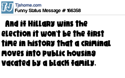- # 166346 If Trump wins the election it'll be the first time in history that a billionaire moved into public housing vacated by a black family.