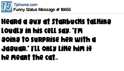 X heard a guy at Starbucks talking loudly in his cell say, "I'm going to surprise her with a Jaguar." I'll only like him if he meant the cat..