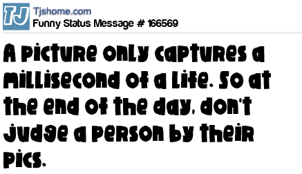 X says A picture only captures a millisecond of a life. So at the end of the day, don't judge a person by their pics.