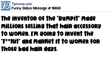 X is The inventor of the "Bumpit" made millions selling that hair accessory to women. I'm going to invent the "F**kit" and market it to women for those bad hair days.