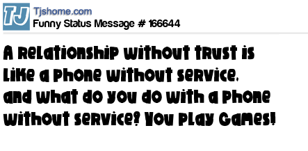 - # 79212 A relationship without trust is like having a phone with no service & what you do with a phone w. no service ? You play games