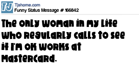 X says The only woman in my life who regularly calls to see if I'm ok works at MasterCard.