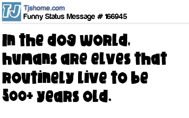 X In the dog world, humans are elves that routinely live to be 500+ years old.