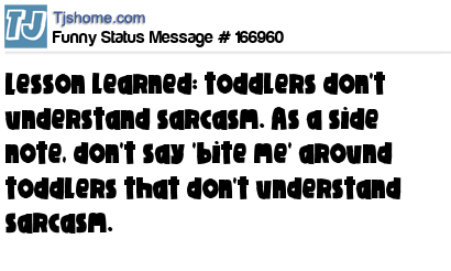 X says Lesson learned: toddlers don't understand sarcasm. As a side note, don't say 'bite me' around toddlers that don't understand sarcasm.