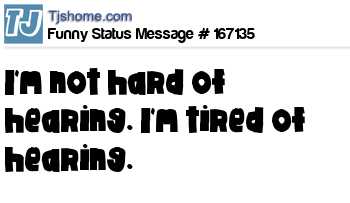 X says I'm not hard of hearing. I'm tired of hearing.