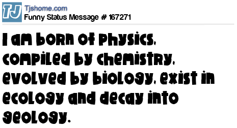 X says I am born of physics, compiled by chemistry, evolved by biology, exist in ecology and decay into geology.