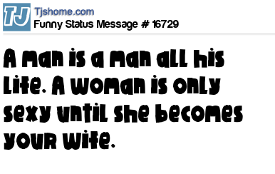 X  A man is a man all his life. A woman is only sexy until she becomes your wife.