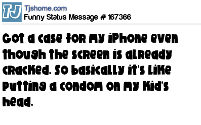 - # 165652 Why would you buy a case for your cracked cell phone, that's like buying a condom to put on your kids head?!?!