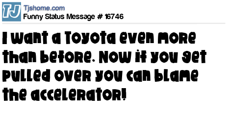 X I want a Toyota even more than before. Now if you get pulled over you can blame the accelerator!