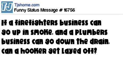 - # 130836 If a fireman's job can go up in smoke, and a plumbers job can go down the drain, can a hooker get laid off?!