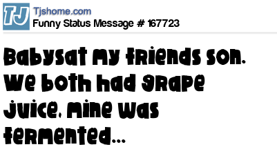 X says Babysat my friends son. We both had grape juice, mine was fermented...