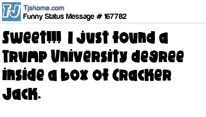 X says Sweet!!! I just found a Trump University degree inside a box of Cracker Jack.