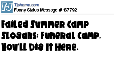 X says Failed Summer Camp Slogans: Funeral Camp, You'll Dig It Here.