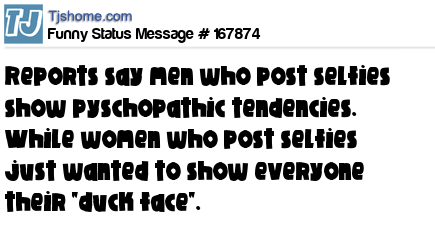 X says Reports say men who post selfies show pyschopathic tendencies. While women who post selfies just wanted to show everyone their "duck face".