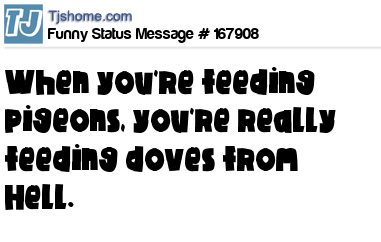 X says When you're feeding pigeons, you're really feeding doves from Hell.