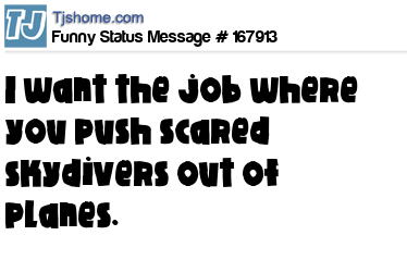 - # 205517 Just might make a career change....I want the job where you push scared skydivers out of planes