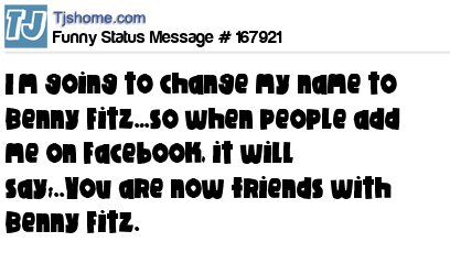 X says I’m going to change my name to Benny Fitz…so when people add me on Facebook, it will say;..You are now friends with Benny Fitz.