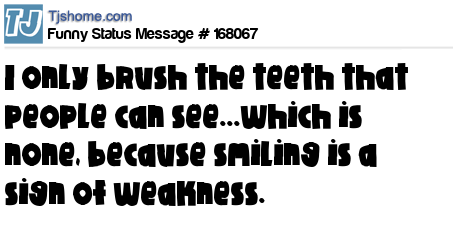 X says I only brush the teeth that people can see...which is none, because smiling is a sign of weakness.