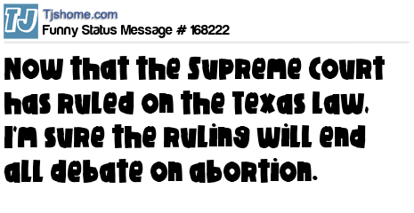 X says Now that the Supreme Court has ruled on the Texas law, I'm sure the ruling will end all debate on abortion.