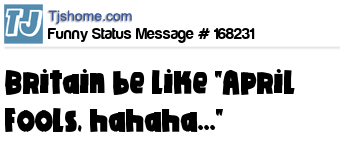 - # 95516 good joke today...single people change ur realtionship status to "in a relation". when friends ask who it is say "april....April Fools"