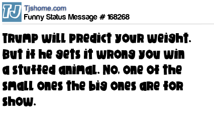 X says Trump will predict your weight. But if he gets it wrong you win a stuffed animal. No, one of the small ones the big ones are for show.