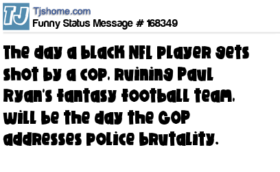 X says The day a black NFL player gets shot by a cop, ruining Paul Ryan's fantasy football team, will be the day the GOP addresses police brutality.