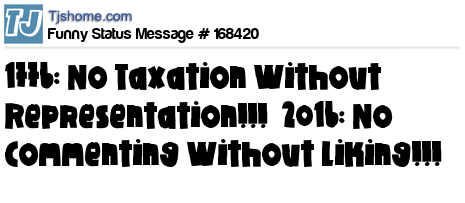 X says 1776: No Taxation Without Representation!!! 2016: No Commenting Without Liking!!!