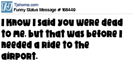 X says I know I said you were dead to me, but that was before I needed a ride to the airport.