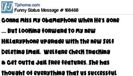 X  Gonna miss my Obamaphone when He's gone .... But looking forward to my new Hillaryphone upgrade with the new Self Deleting Email,  Welfare Check tracking & Get outta Jail Free features. She has thought of everything that us successful Millennials need!!
