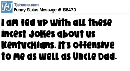 X says I am fed up with all these incest jokes about us Kentuckians. It's offensive to me as well as Uncle Dad.