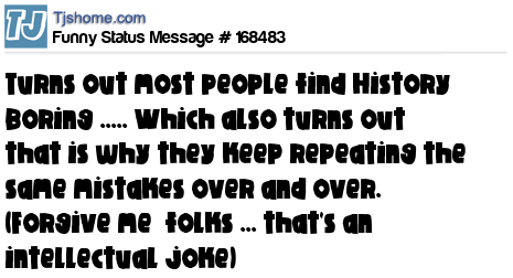 X  Turns out most people find History Boring ..... Which also turns out  that is why they keep repeating the same mistakes over and over. (Forgive me  folks ... that's an intellectual joke)
