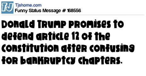 X says Donald Trump promises to defend article 12 of the Constitution after confusing for bankruptcy chapters.