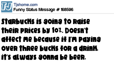 X says Starbucks is going to raise their prices by 10%. Doesn't affect me because if I'm paying over three bucks for a drink, it's always gonna be beer.
