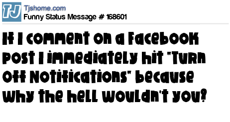X says If I comment on a Facebook post I immediately hit "Turn Off Notifications" because why the hell wouldn't you?