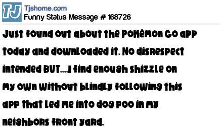 X is Just found out about the Pokémon Go app today and downloaded it. No disrespect intended BUT....I find enough shizzle on my own without blindly following this app that led me into dog poo in my neighbors front yard.