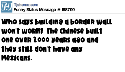 - # 173898 Alls I'm sayin is the Chinese built a wall 2,000 years ago - and they still don't have any Mexicans. . .