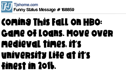 X says Coming This Fall On HBO: Game of Loans. Move over medieval times, it's university life at it's finest in 2016.